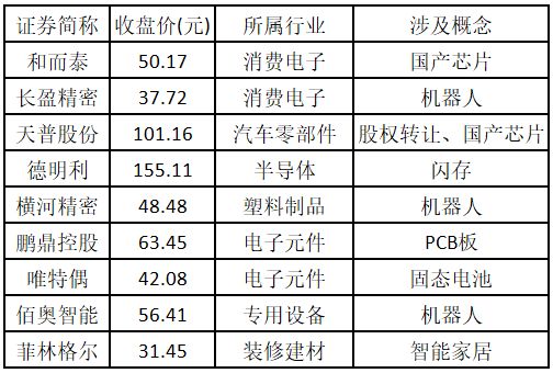 从涨势强度来看,涨停板个股中,股价创出历史新高个股共有9只,包括和而泰、长盈精密、天普股份、德明利、横河精密、鹏鼎控股、唯特偶、佰奥智能、菲林格尔。