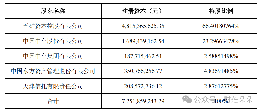 外贸金租成立于1985年3月4日,前身为中国出口商品基地建设总公司设立的企业,1986年获批成为金融机构。1994年划归中国五矿集团,2007年改制为有限责任公司并引入中国东方资产管理公司。2024年1月吸收合并中车金融租赁有限公司 ,注册资本增至72.52元,合并后形成中国五矿与中国中车集团双央企控股架构,定位为产业赋能的金融服务平台。股东增至5家,分别为五矿资本持股66.40%为控股股东,中车股份、中车集团分别持股23.30%、2.59%,东方资产持股4.84%、天津信托持股2.88%。