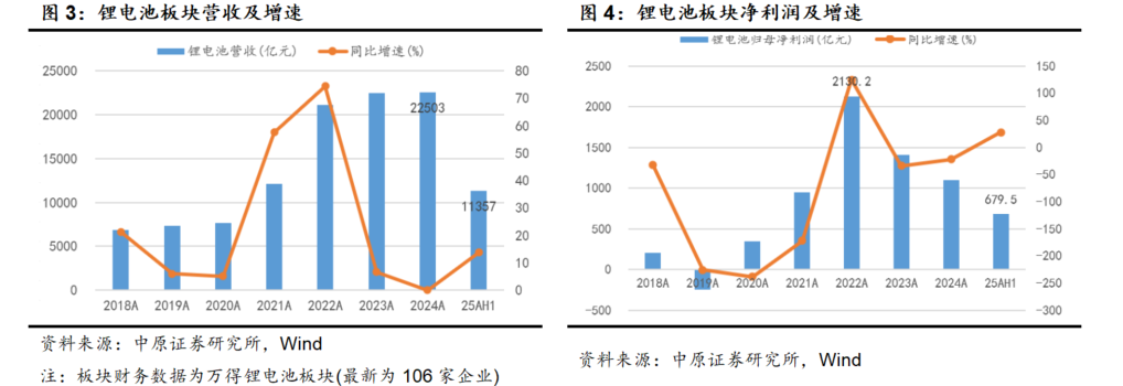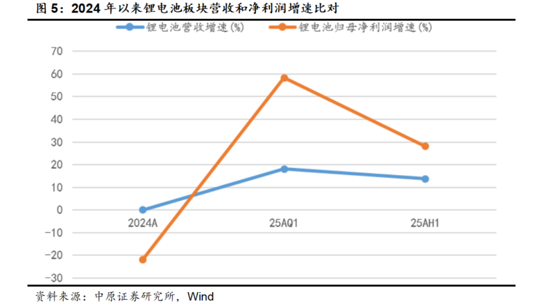 四是细分领域业绩存在较大差异。锂电产业细分领域业绩差异显著,2024年营收方面动力电池、隔膜和电解液相对较好,净利润正极和锂矿细分领域则相对较好;2025年上半年,营收方面电解液、动力电池、负极材料表现较好,净利润方面负极材料、锂矿、正极材料和电解液表现较好。