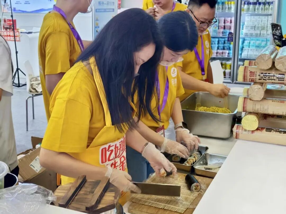 为契合展会“沉浸式体验”理念,金健米业打造的多元化互动场景成为全场打卡点。限定体验产品“米咖”以玉针香米为原料,融合醇香米浆与咖啡,口感层次丰富,成为必尝“网红单品”;以“金健凉拌面”现制的爽口拌面、优质大米烹煮的煲仔饭及软糯寿司还原本味,引观众排队。在9月20日举办的湘味食材采购对接选品会上,公司推介的“湘菜王菜籽油”“国珍天香米”2款产品,精准匹配产业需求,获大量意向咨询。凭借深厚品牌积淀和卓越产品品质,金健米业在本届食餐会上共获7项大会金奖。