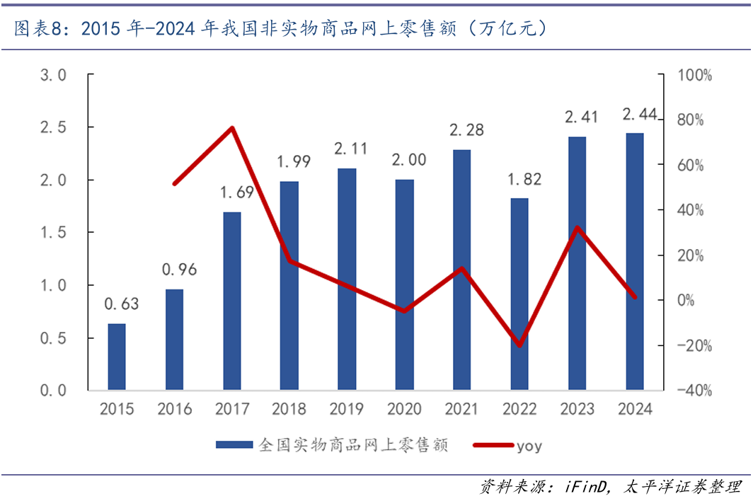 我国虚拟商品销售规模快速增长。随着我国网络零售市场规模稳健增长和新的消费热点出现,以文化娱乐、休闲旅游、大众餐饮等为代表消费升级类商品快速增长。众多平台纷纷布局生活权益卡券业务,从电商巨头到本地生活服务平台,从出行类APP到娱乐内容提供商,都在通过发放各类卡券吸引用户、促进消费,这使得生活权益卡券市场规模不断扩张。未来,随着5G通信技术、物联网等新一代信息技术的应用,线上卡券市场将进一步拓展服务领域,如智能家居、教育、医疗等,开辟产业升级新赛道。