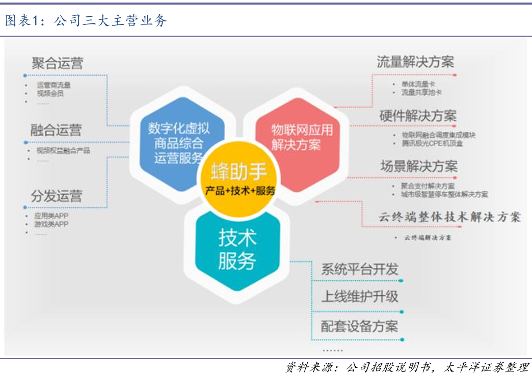 2)融合运营服务:公司与运营商、网络视频商合作,主要通过将通用流量与视频权益进行组合,用户消费时同时获得流量和视频权益两项服务,蜂助手从运营商、网络视频商取得结算收入。