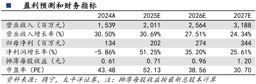 投资建议:预计公司2025-2027年营业收入分别为20.11/25.64/31.88亿元,归母净利润分别为2.02/2.74/3.44亿元。维持“买入”评级。