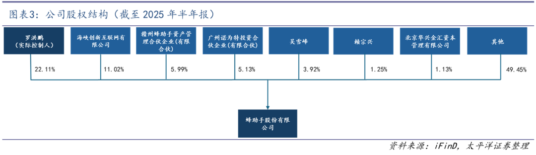 实控人持股比例较高。罗洪鹏先生为公司实际控制人,直接持有公司22.11%的股份,并通过其一致行动人赣州蜂助手资产管理合伙企业(有限合伙)、广州诺为特投资合伙企业(有限合伙)及吴雪锋合计控制公司37.15%的股份。公司管理团队成员大部分深耕行业十余年,对移动通信及互联网行业有深刻认识和理解。董事长罗洪鹏先生曾历任中国移动核心网维护工程师、广东省市场部经营分析师、电子渠道经理等;董事、副总经理丁惊雷曾任中国移动G3产品区域总监;董事、副总经理、董事会秘书韦子军先生历任广东公司佛山分公司综合部副总经理、财务部副总经理,中国铁塔股份有限公司佛山市分公司财务部总经理。