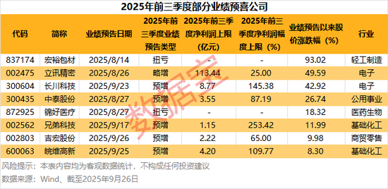 30余家公司披露2025年前三季度业绩预告。