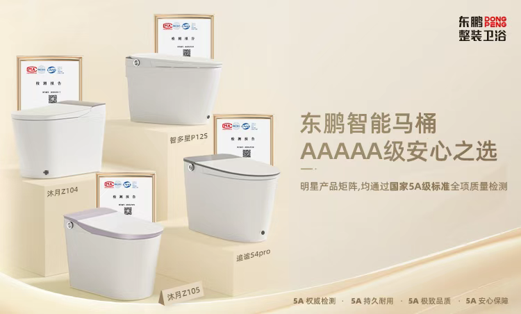 当前,中国智能卫浴行业正迎来以品质升级为核心的新发展阶段。随着消费市场需求持续升级和标准化体系不断完善,行业竞争正从单纯的功能创新转向全方位的品质提升。近日,东鹏明星舰队系列智能马桶产品全面通过国标消费品质量分级最高等级5A级检测,成为行业内少数获得该项权威认证的品牌之一。