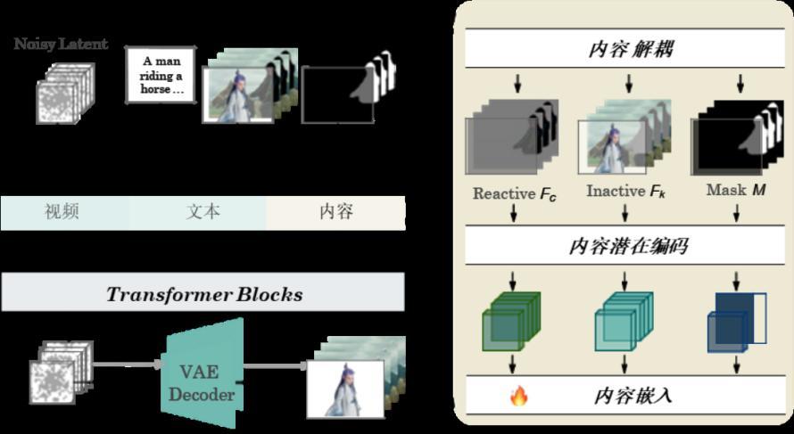 在原视频生成任务架构上,引入一个内容嵌入机制。将文本、视频和其他内容嵌入整合为一个统一的输入条件单元。这个内容嵌入由一个经过训练的内容编码器生成。通过这种方式,能够把不同模态的输入信息进行规范化处理,便于模型后续处理。