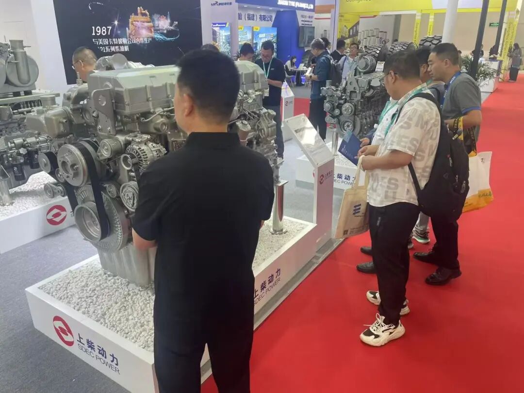 BICES 2025,上柴动力展出专为矿山设备场景研发的17J、经典工程机械动力7H,以及针对新能源场景推出的8Y增程器、4H增程器等产品。