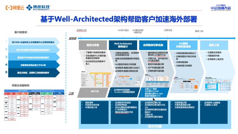面对企业“出海”热潮,云架构稳定性、数据合规性、本地化运营效率等痛点也随之凸显。对此,博彦科技与阿里云深度协同,基于云卓越架构共创出海解决方案:以“双盒产品管理”破解云部署难题,通过“数据治理+数据中台”双体系突破跨境数据合规壁垒,并构建“发现-评估-架构-迁移-优化”五步闭环,实现无感云迁移与本地化运营的无缝衔接,让企业出海之路更顺畅、更安心。