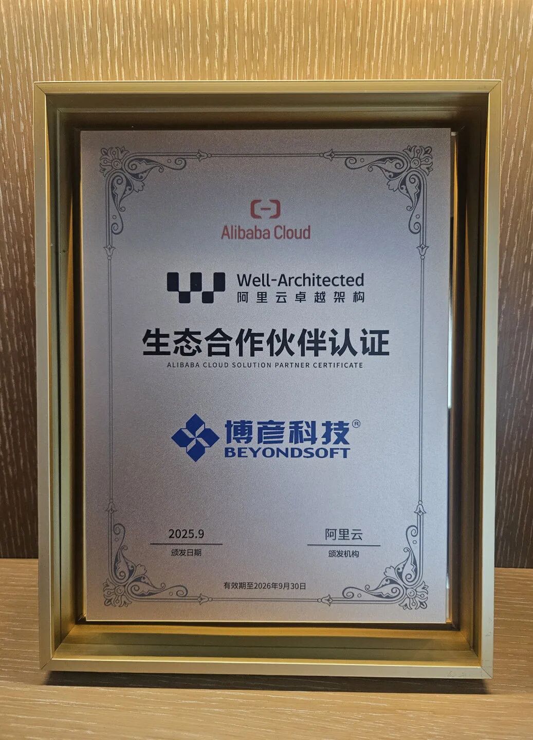 阿里云卓越架构凝聚多年实战智慧,旨在为企业打造安全、高效、可持续的云上基座。博彦科技经过严苛评估,从全栈方案设计到落地实施能力全面突围,成功获此殊荣。这不仅是对公司在云架构治理领域深厚积淀的认可,更印证了“创新开拓、追求卓越”的价值理念。