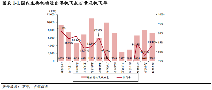 机场方面: 2025.9.6-2025.9.12:国内进出港执飞航班量TOP5机场依次是广州白云机场(11061班次)、上海浦东机场(10950班次)、北京首都机场(9182班次)、深圳宝安机场(8402班次)、成都天府机场(8028班次)。各枢纽机场国内航班量周环比变化:首都+5.27%、大兴+8.54%、双流-1.10%、江北-4.66%、浦东-1.97%、虹桥+0.73%、白云-0.98%、宝安-3.34%、三亚-10.28%、海口-11.34%、萧山-1.84%、天府-4.69%、咸阳-2.85%。