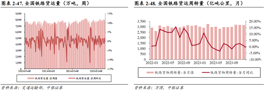 9月15日-9月21日,国家铁路运输货物8060.6万吨,环比增长0.21%。根据交通运输部发布数据显示,2025年8月,全国铁路货运周转量为3167.01亿吨公里,同比上升8.80%。
