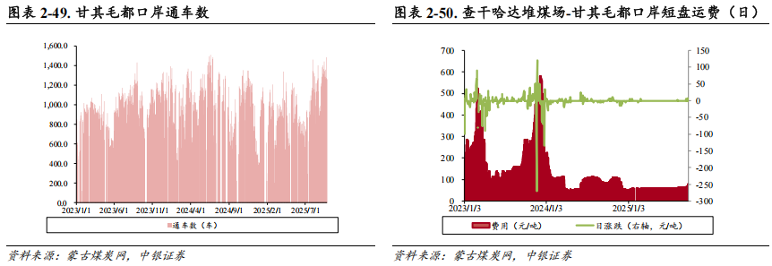 9月20日-9月26日,查干哈达堆煤场-甘其毛都口岸炼焦煤短盘运费日均72.43元/吨;9月8日-9月14日,通车数环比上涨0.55%,日平均通车1132.29辆。查干哈达堆煤场-甘其毛都口岸炼焦煤短盘运费环比上涨,9月20日-9月26日均值达72.43元/吨。
