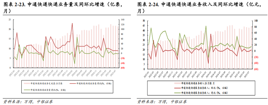 申通快递:2025年8月单票价格2.06元,同比+3.00%(+0.06元),环比+4.57%(+0.09元)。