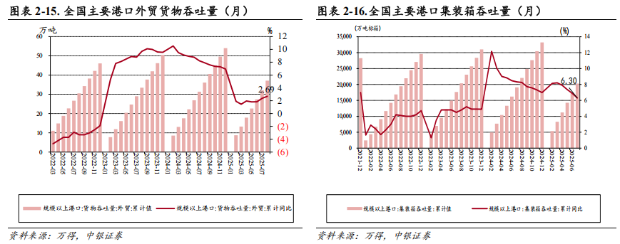 2.2.2量:2025年1-7月全国港口货物、集装箱吞吐量分别为104.41亿吨/20294万标箱