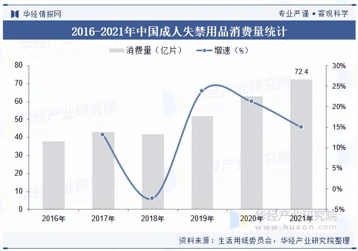随着居民生活水平不断提高,人们对中老年人生活品质愈发重视,消费者对成人失禁用品的接受度也持续提升,推动了我国成人纸尿裤市场的发展。根据生活用纸委员会统计,2021年我国成人失禁用品总消费量72.4亿片,同比增长14.9%,发展迅猛。