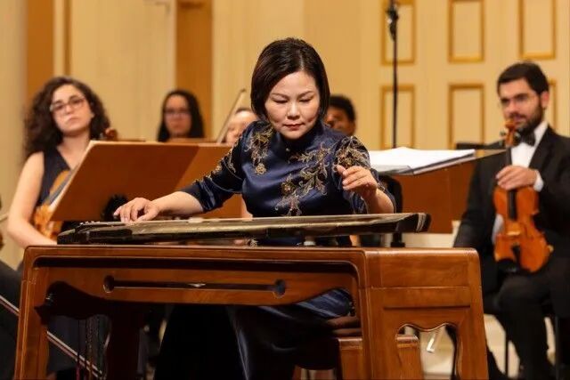 活动庆典音乐会在莫扎特音乐大厅举行,均瑶健康公益古琴殿馆长朱晓捷携世界非物质文化遗产——源自宋朝孔子庙大成殿庆典所用的千年古琴“清流戛玉”登台,为音乐会拉开序幕。一曲《流水》悠扬奏响,将观众带入丝绸之路的文明图景,传递出中国艺术、饮食与服饰等文化瑰宝的世界传播使命。