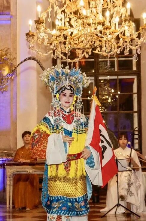在雷翁波德斯克恩王宫,两个世界音乐节联合创始人、中国长城学会文化艺术专业委员会主任、棣国集团董事长王仕棣带领来自哈佛大学等高校的中国青年艺术家,表演了豫剧、古筝与二胡等传统艺术,并启动“故宫·茶世界”文化项目海外巡展欧洲首站。