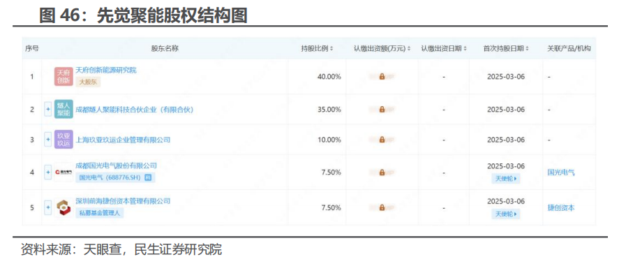 先觉聚能股东方包括天府创新能源研究院、成都国光电气股份有限公司(简称“国光电气”)、深圳前海捷创资本管理有限公司(简称“捷创资本”)等等。据悉,国光电气持股7.5%,并拥有两个董事会席位,其中,国光电气董事长张亚担任先觉聚能董事长。先觉聚能定位为支撑天府创新能源研究院发展的市场化机构,将与天府创新能源研究院共同构建起“研究院+公司”相互支撑的聚变裂变混合能源事业核心组织架构。