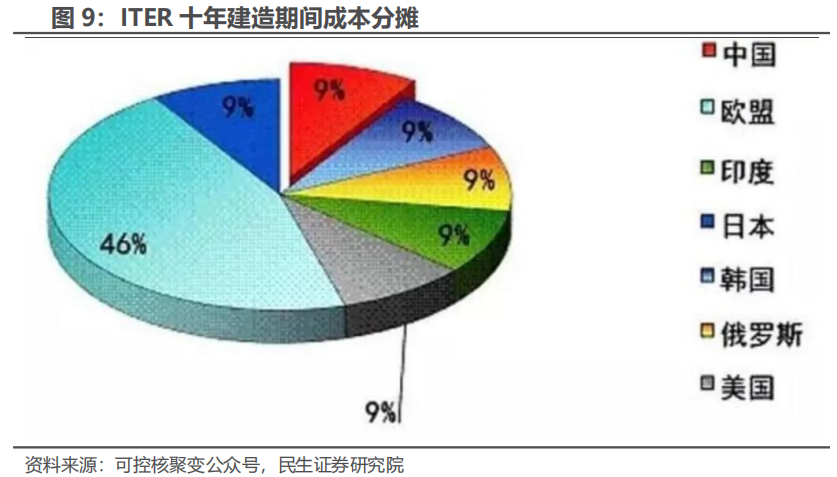 此外我国聚变产供链体系初步成立。目前,国内以中核集团和中科院为代表的两大聚变能研究机构已分别牵头成立产业联盟,旨在围绕聚变研究装置建立聚变产供链体系,实现聚变产业化融合发展。1)中核集团牵头成立可控核聚变创新联合体:联合体包含33家中央企业、科研院所、高等院校及民营企业,其目标是把握未来产业关键环节,探索聚变能创新体系能力建设,在技术研发、产业化推进、国际合作等方面发挥合力优势,完成聚变产业生态培育、全产业链体系打造。2)中国科学院等离子体研究所于2023年牵头成立聚变产业联盟:该联盟联合合肥合锻、中国一重(维权)、上海电气、西部超导等相关企业、科研院校、服务机构。该产业联盟下设9个工作组,旨在统筹加快聚变能源核心技术攻关。
