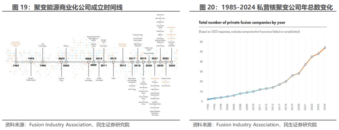 华中科技大学聚变研究中心教授武松涛认为,若聚变能的开发可在2040年代商业化,将有望在2050年占据3万亿美元/年化石能源的市场。所以聚变能的商业化前景备受关注。据不完全统计,当前全球范围内有50多家商业公司正致力于实现聚变能源商业化。根据FIA对45家聚变公司的调研信息,行业融资规模持续攀升。各国政府对聚变能开发的关注度也在提升,一个关键共识在形成,即:将聚变能源技术路径可行性验证的聚变试验堆工程交由市场主体主导。另外,需要指出的是,目前国际上也在积极探索非托卡马克型的聚变堆技术路线。特别是国际上兴起的众多聚变商业公司在积极探索非托卡马克型技术路线及无中子聚变。