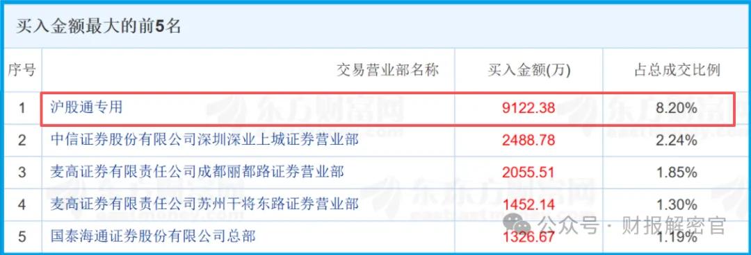 然而,多方力量却更为强大。沪股通席位在昨日买入金额高达9122.38万元,占当日总成交额的8.2%,成为买入榜首。