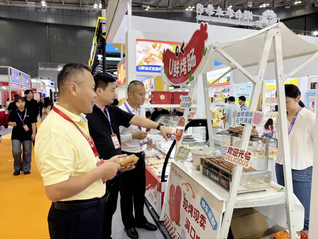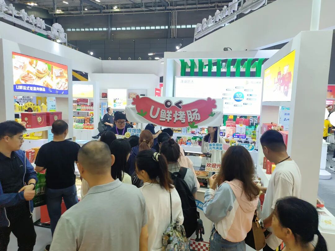 在现场,湖南优鲜食品有限公司推出的精品藏香猪肉、法式香肠、培根、火腿、休闲零食等多款旗舰产品整齐地陈列在冰柜里和展桌上,受到广大顾客和参展同仁的青睐。新五丰团队采取现场烹调、试吃等形式,热情地为大家介绍产品风味、制作工艺和品牌优势,并与来自全国各地的客商就生猪和肉类原料供应、产品经销推广、品牌建设合作等事宜进行了合作洽谈。