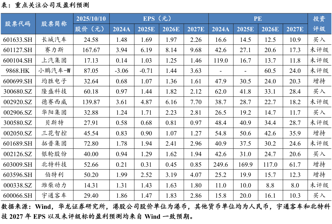 风险提示:宏观经济波动风险;相关政策不及预期;原材料价格波动风险;地缘政治风险;重点车型销量不及预期;智能驾驶进展不及预期;第三方数据误差风险;重点关注公司业绩不及预期。