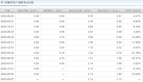 基金业绩下降,基金规模也随之下降。浦银兴耀优选一年持有混合A基金成立之初募集了2.13亿元,但基金规模一直没增长过,而是一直在下降。截至2025年6月30日,浦银兴耀优选一年持有混合A,期末净资产0.51亿元,比上期减少2.01%。