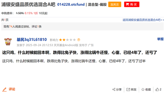 基金业绩亏损,有基民表示,亏损近50%的情况下,基金公司仍稳收管理费。前基金经理的投资逻辑究竟是短期博弈还是长期价值投资?混乱的操作风格让投资者难以捕捉主线,高换手与亏损并存的局面下,公司风控与投研管理是否存在漏洞?也有基民表示,这只基金什么时候能回本啊,跌得比兔子快,涨得比锅牛还慢,心塞,已经4年了。