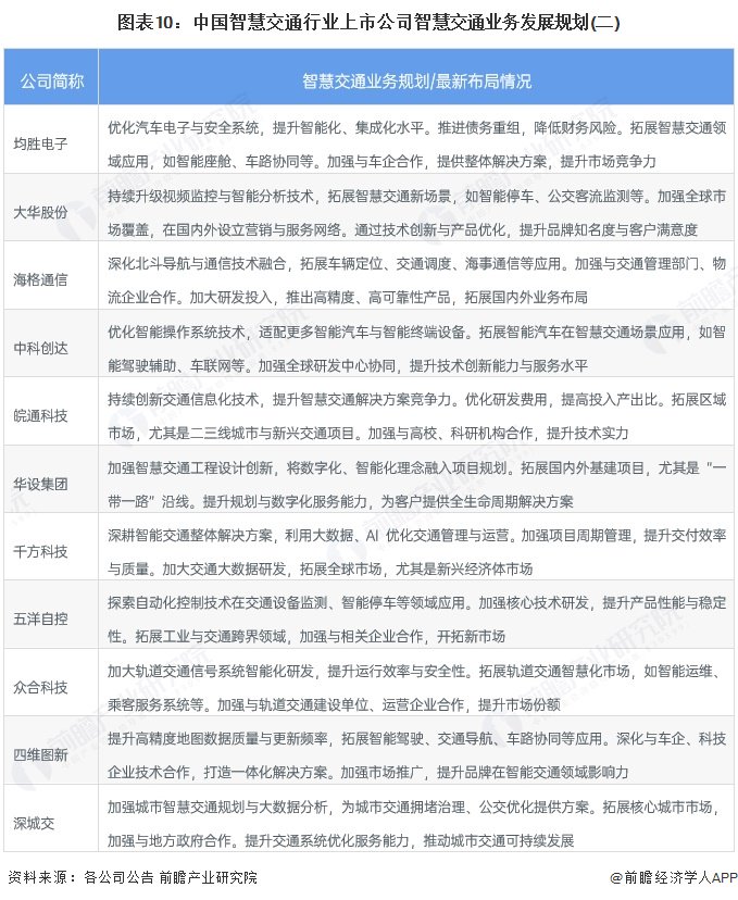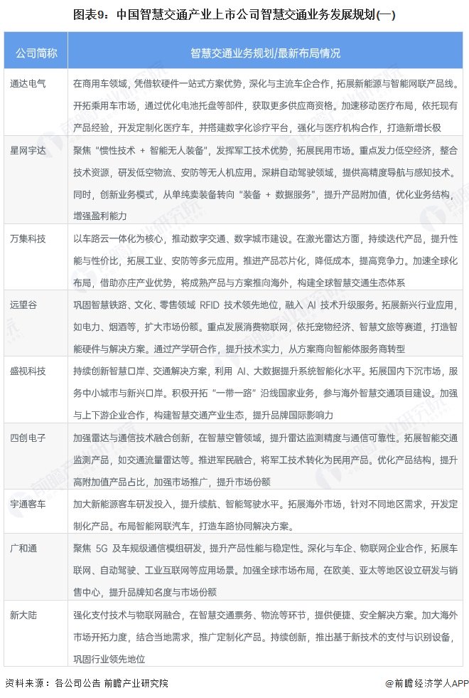智慧交通企业在业务发展规划上聚焦智慧交通与核心领域升级。技术层面,普遍加大研发投入,推动AI、大数据、5G等技术与主业融合,如万集科技迭代激光雷达、四维图新优化高精度地图。场景拓展方面,行业大部分企业目前普遍在深耕智能驾驶、车路协同、轨道交通等细分领域,而宇通客车等车企也在提升新能源客车智能化,众合科技则在轨道信号系统上进行智慧交通的布局。市场开拓上,头部企业将加速全球市场的渗透,广和通将持续在海外市场谋求计划;此外,部分企业将继续在本土深耕,并拓展下沉市场,例如皖通科技、华设集团等企业持续服务二三线城市。此外,为优化成本与风险管控,部分上市公司通过产学研合作、产业链协同强化竞争力。