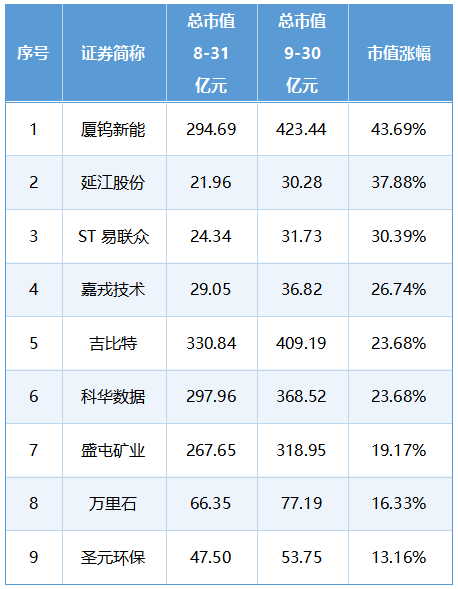 截至2025年9月底,辖区共有23家上市公司市值对比8月有所增长,9家公司市值涨幅超10%,其中,6家公司涨幅达20%以上。