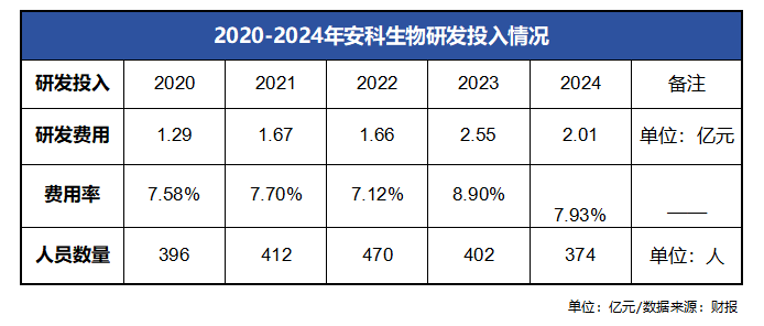 财报数据显示,自2020年以来,安科生物的研发投入正在逐步提升,在2023年无论2.55亿元的投入额度,还是8.9%的研发费用率,都已达到阶段性高点。安科生物副总裁窦颖辉表示,新方向明确后研发投入还会有明显提升。