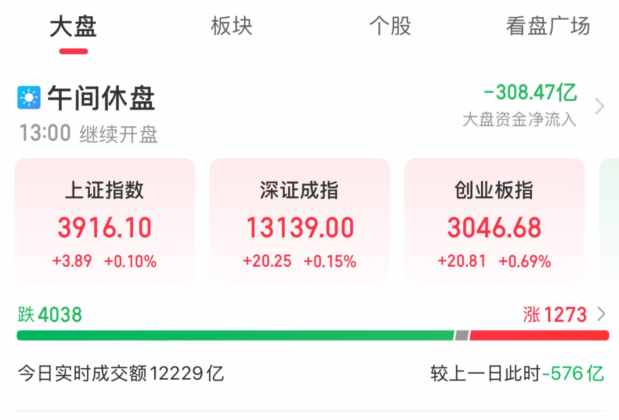 A股三大指数早盘集体上涨,截至午盘,上证指数涨0.1%,深成指涨0.15%,创业板指涨0.69%,北证50跌1.16%。沪深京三市半日成交额12229亿元,较上日缩量576亿元。全市场超1200只个股上涨。