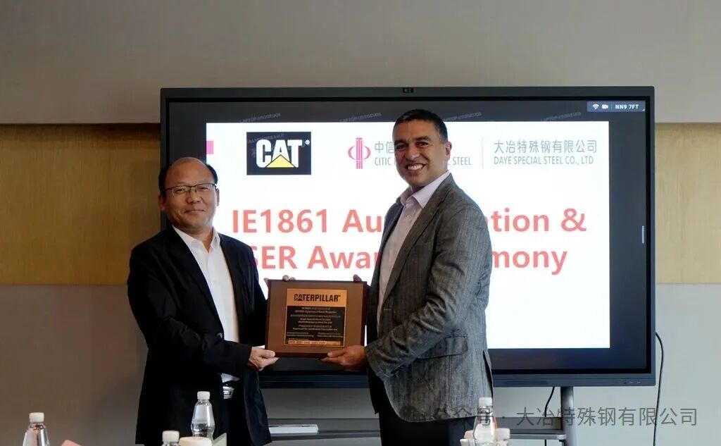 10月14日,大冶特殊钢有限公司迎来重要时刻——全球工程机械巨头卡特彼勒全球采购总监Ernie Reyes率亚太区团队到访,为其颁发“IE1861”与“SER(卓越供应商)”两项重磅荣誉,纪念双方20余年合作再结硕果。大冶特钢党委书记、总经理刘文学等领导出席仪式,共话深化合作蓝图。