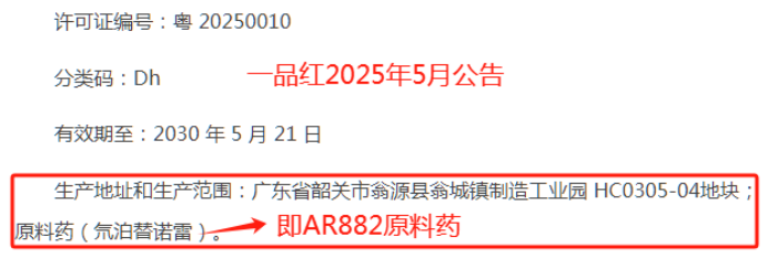 更为关键的是,2025年5月29日,一品红公告称取得AR882原料药的生产许可,打通产业链上游。