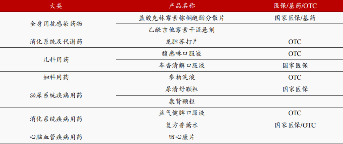 其他药物,公司布局也比较丰富,慢病药涵盖心脑血管、肾脏疾病等,代表产品有独家的尿清舒颗粒。妇科用药,一品红的参柏洗液,位列京东同品类的第一名。
