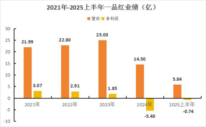 并且,2025上半年,业绩下滑颓势尚未好转,当期一品红营收、净利润分别同比下降36%、258%。