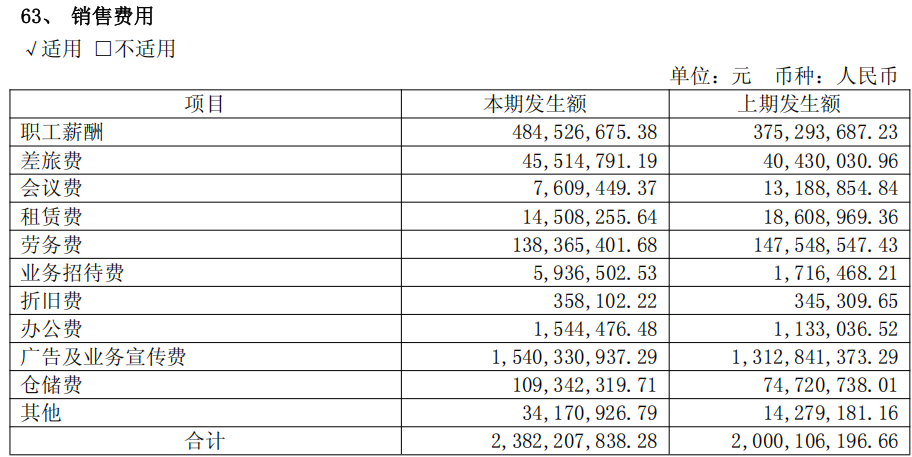 从下表看,期间费用增长较多,主要是销售费用大幅增长19.1%所致。