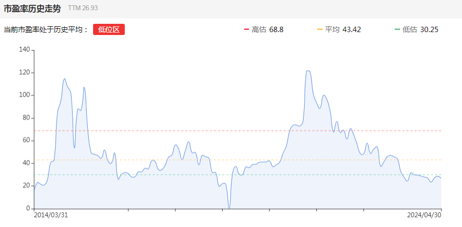 从历史市盈率来看,当下处于历史市盈率低估区域。