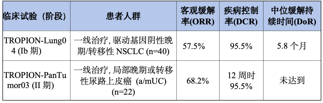 表2 Dato-DXd与rilvegostomig联合治疗的关键早期临床核心数据