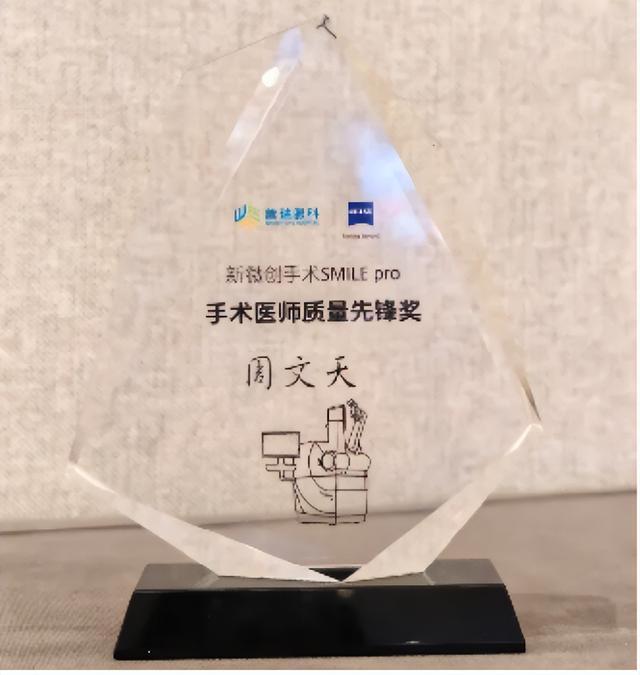周文天教授荣获“新微创全飞秒TM手术SMILEpro手术质量先锋奖”