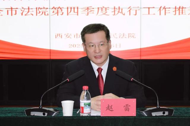 西安中院党组书记、院长赵雷出席会议并讲话。陕西高院执行局副局长李旭到会指导。西安中院执行局局长杨成哲主持会议并安排部署第四季度全市法院执行工作。