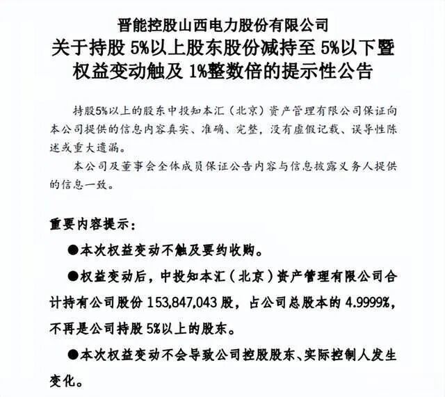 中投知本汇通过其管理的晋商1号和晋商2号私募投资基金持有晋控电力股份。本次减持后,中投知本汇的持股数由27624.31万股降至15384.70万股。