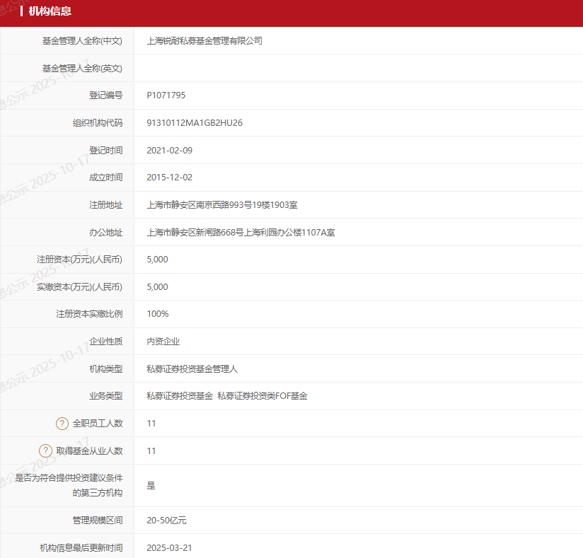 上海锐耐私募,成立于2015年,长期致力于全球金融市场交易,将华尔街策略与本土融会贯通,持续开发新的人工智能交易策略。公司产品主要分为三大类策略:高频无风险套利、高频统计套利、高频多空波动率。用ETF、股指期货、股票现货、期权等标的做的两大类高频策略:无风险套利和风险中性策略。对算法、交易系统、数据分析以及低延迟网络要求非常高,对风险管理要求也较高。