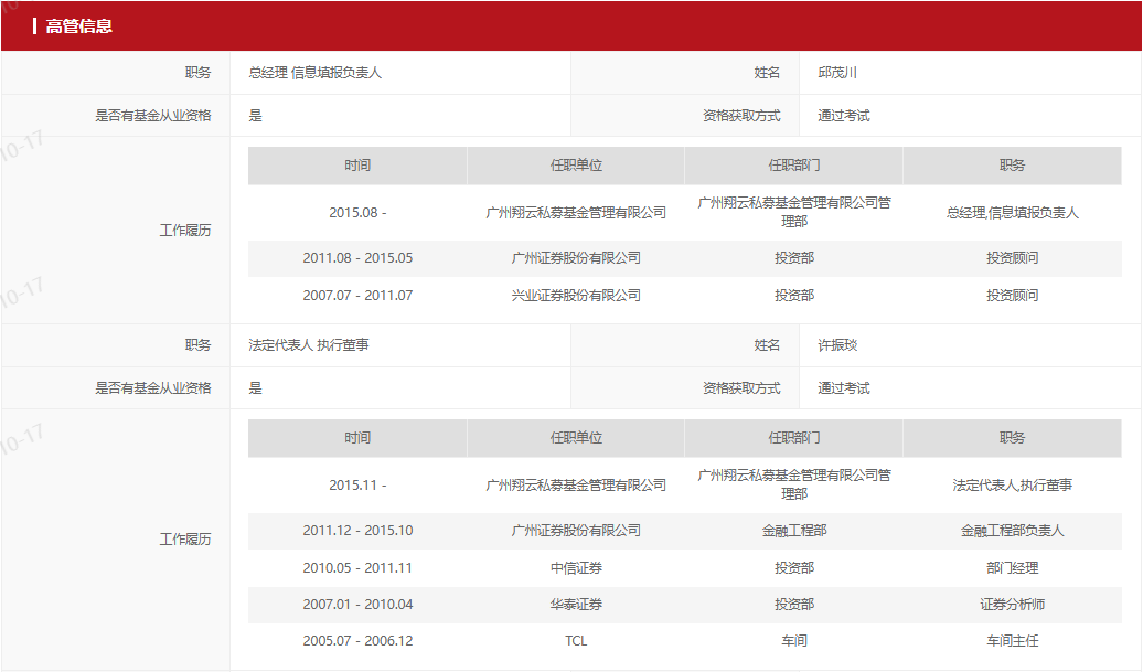 法定代表人许振琰,暨南大学研究生,信息管理与信息系统专业背景,12年证券从业经历,曾在数家券商负责量化套利对冲领域的研究与投资,深谙低风险资产管理的投资精髓,领导开发了Alpha策略、量化事件驱动、程序化交易、无风险套利、衍生品统计套利等模型。