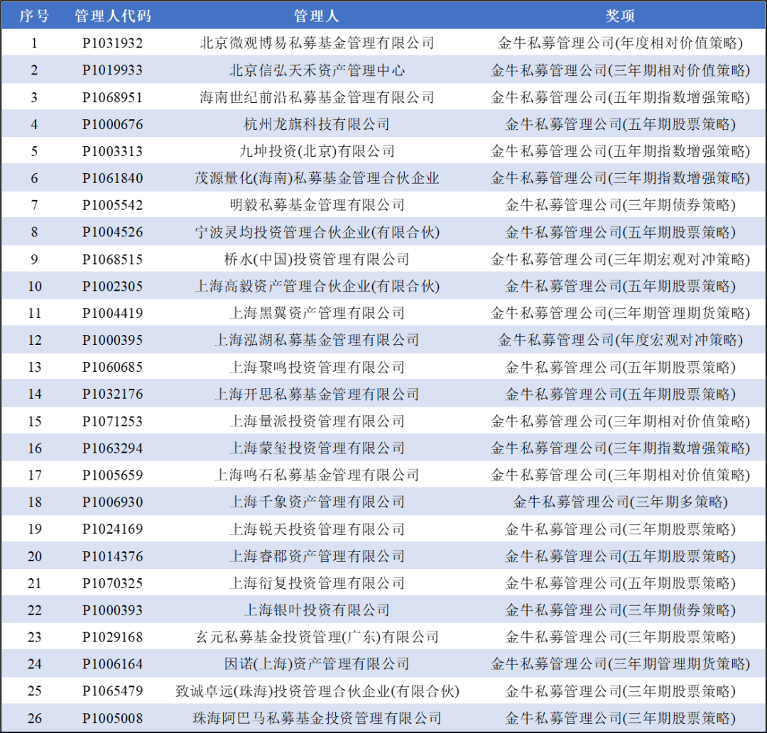 从榜单可以看出,获奖者覆盖了股票、债券、宏观对冲、管理期货(CTA)、多策略等多种投资策略,反映出市场对在不同领域持续创造阿尔法收益能力的认可。