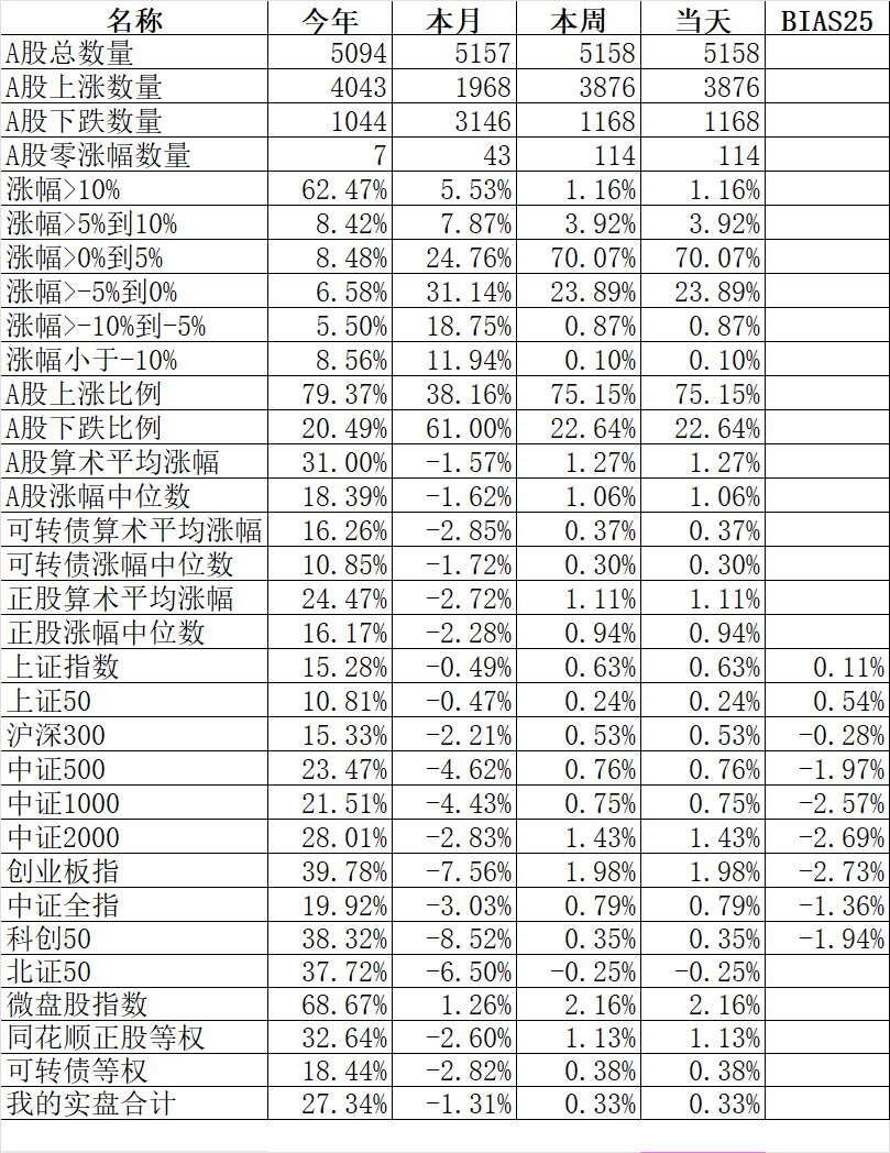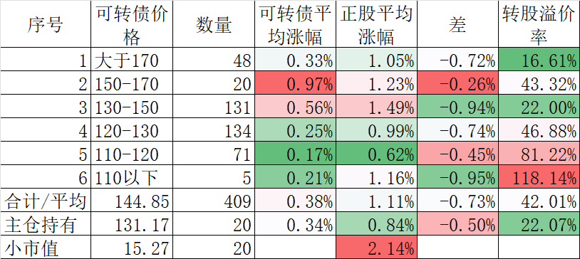 409只可转债平均上涨0.38%,对应正股平均上涨1.11%。我的主仓20只可转债平均上涨0.34%,对应正股平均上涨0.84%。今天没有任何操作,账户合计最终上涨0.33%,账户离开历史新高还有2.28%。