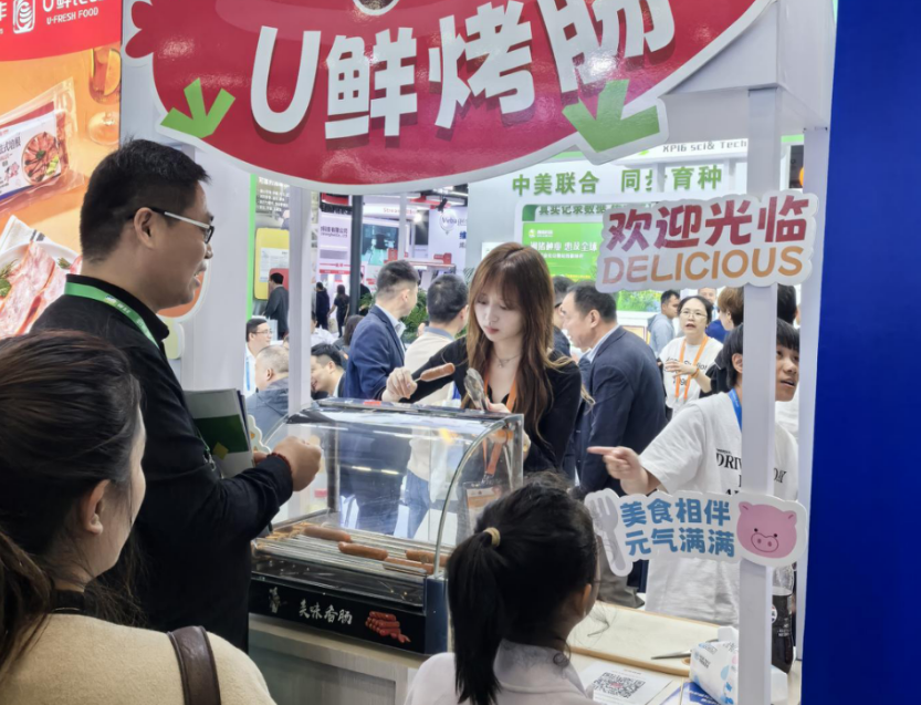 新五丰不仅注重猪苗的先天健康与生长性能,更致力于构建从种猪育种、饲料营养、健康管理到食品安全的全程可控产业链。本次展会上,新五丰所属“优鲜”品牌推出的法式香肠等深加工产品,凭借独特的风味也受到现场观众的青睐,体现出公司从“养猪”到“卖肉”再到“打造深加工产品”的跨越式发展。