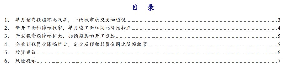风险提示:(1)行业销售恢复不及预期,融资改善不及预期,房企资金风险进一步加大。(2)政策放松不及预期。